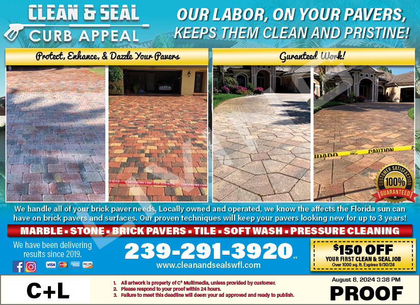 Transforming spaces inside and out, Clean and Seal Curb Appeal in Estero, FL, takes pride in delivering tailored solutions for maintaining and enhancing your property. Services like paver sealing ensure your outdoor spaces remain durable and visually appealing, preventing issues like water damage or fading. By combining treatments such as pressure washing and soft washing, we prepare surfaces for optimal results, erasing dirt and grime while protecting delicate materials. From walkways to patios, paver care becomes simple and effective with expert attention.